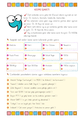 Aşağıdaki özel isimleri kesme işareti kullanarak yeniden yazınız.