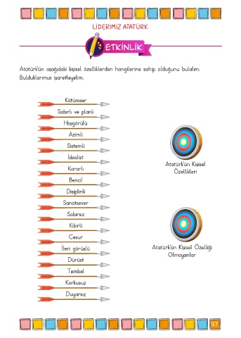 Atatürk’ün aşağıdaki kişisel özelliklerden hangilerine sahip olduğunu bulalım.
