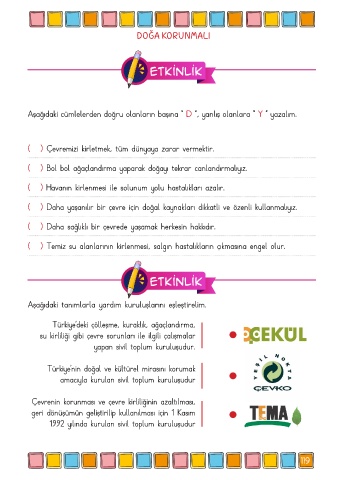 Aşağıdaki cümlelerden doğru olanların başına “ D ”, yanlış olanlara “ Y ” yazalım.