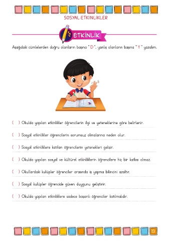 Aşağıdaki cümlelerden doğru olanların başına “ D ”, yanlış olanların başına “ Y ” yazalım.