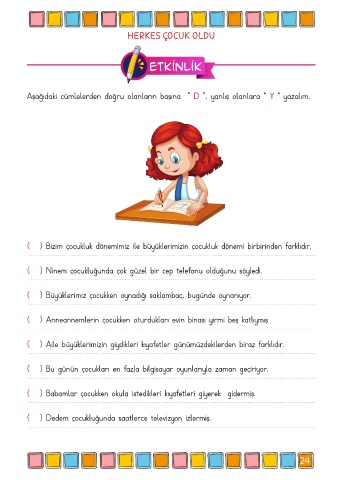 Aşağıdaki cümlelerden doğru olanların başına “ D ”, yanlış olanlara “ Y ” yazalım.