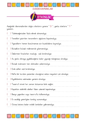 ( ) Banyo yaparken suyu tasarruflu kullanmalıyız.