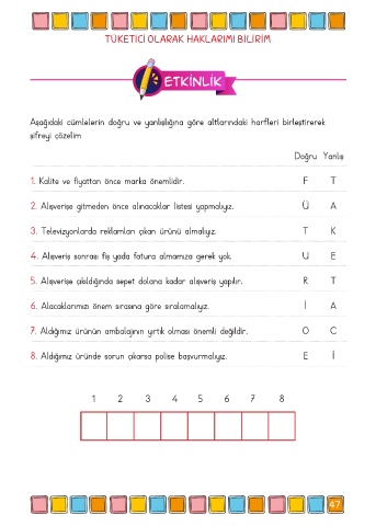 Aşağıdaki cümlelerin doğru ve yanlışlığına göre altlarındaki harfleri birleştirerek
