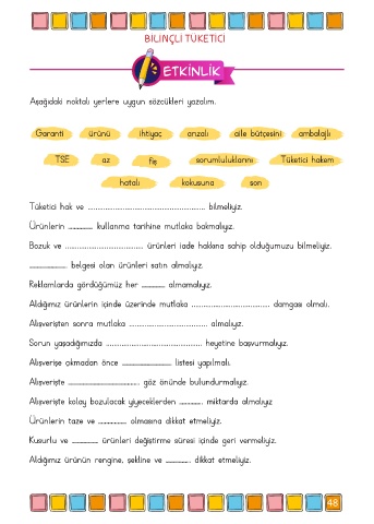 Bozuk ve ........................................ ürünleri iade hakkına sahip olduğumuzu bilmeliyiz.