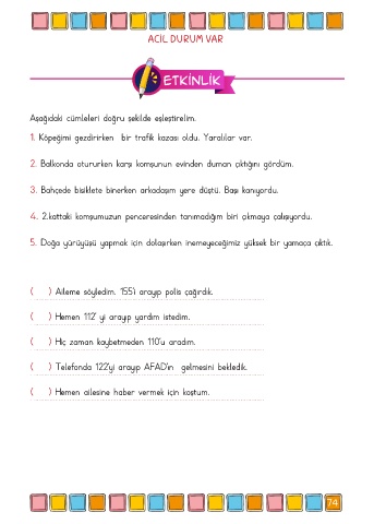 ( ) Telefonda 122’yi arayıp AFAD’ın gelmesini bekledik.
