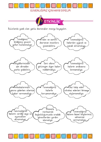 Bulutlarda yazılı olan yanlış davranışları maviye boyayalım.