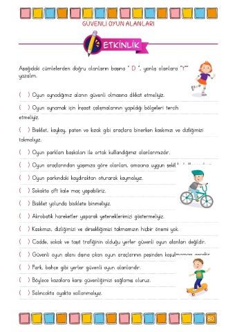 ( ) Oyun oynadığımız alanın güvenli olmasına dikkat etmeliyiz.