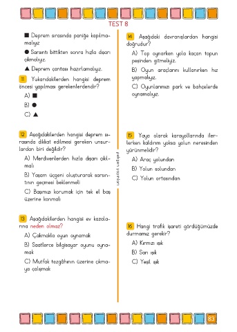 12 Aşağıdakilerden hangisi deprem sı- 15 Yaya olarak karayollarında iler-