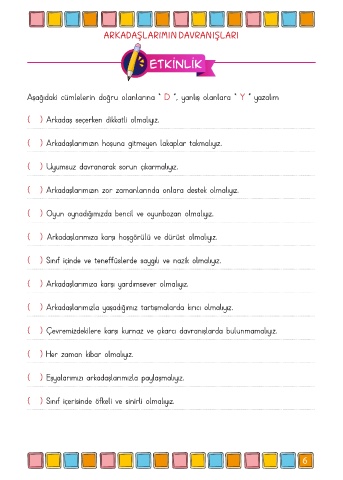 ( ) Arkadaşlarımıza karşı hoşgörülü ve dürüst olmalıyız.
