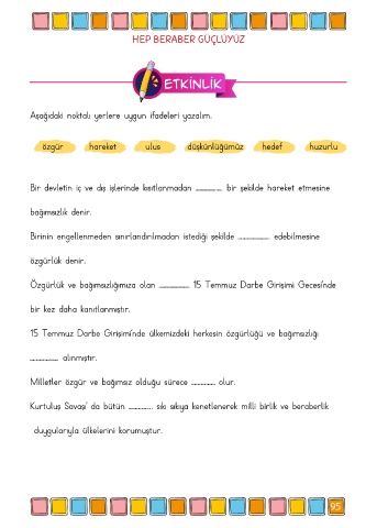Kurtuluş Savaşı’ da bütün ……………….. sıkı sıkıya kenetlenerek milli birlik ve beraberlik
