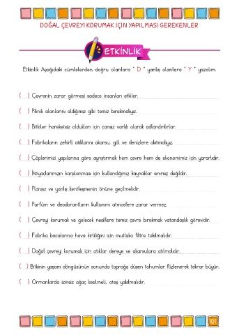 ( ) Çevreyi korumak ve gelecek nesillere temiz çevre bırakmak vatandaşlık görevidir.