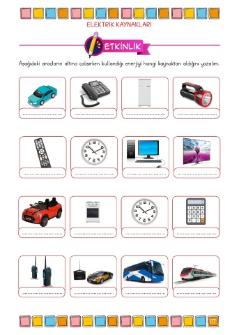 Aşağıdaki araçların altına çalışırken kullandığı enerjiyi hangi kaynaktan aldığını yazalım.