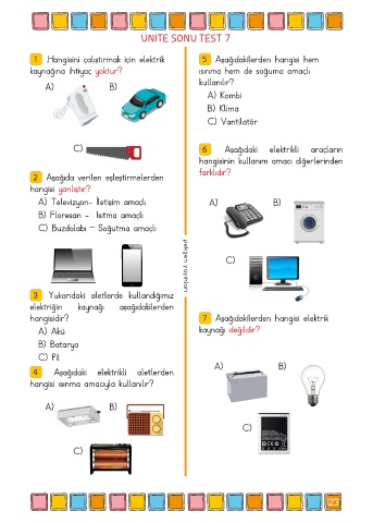 1 .Hangisini çalıştırmak için elektrik 5 Aşağıdakilerden hangisi hem