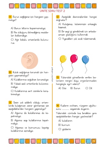 9 Burun sağlığımız için hangisini yap- 12 Aşağıdaki davranışlardan hangisi