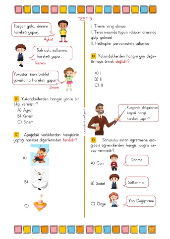 hareketi yapar. 18 Yukarıdakilerden hangisi yön değiş-