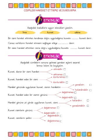 CİSİMLERİ HAREKET ETTİRME VE DURDURMA