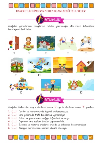 Aşağıdaki ifadelerden doğru olanların başına “D”, yanlış olanların başına “Y” yazalım.
