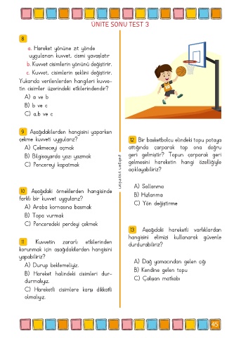 çekme kuvveti uygularız? 12 Bir basketbolcu elindeki topu potaya