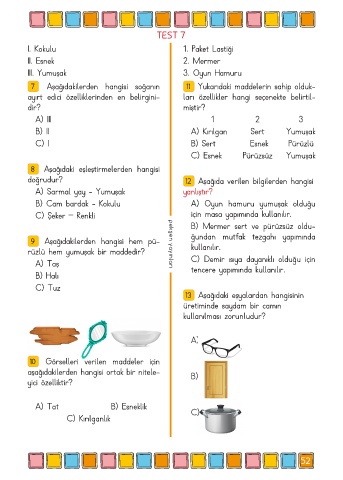 B) Cam bardak - Kokulu A) Oyun hamuru yumuşak olduğu