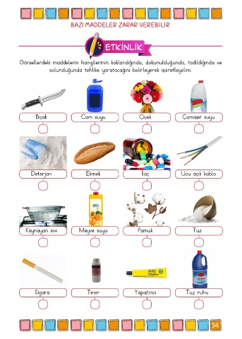 Bıçak Cam suyu Çiçek Çamaşır suyu
