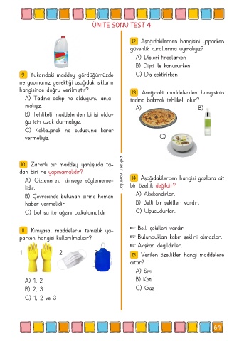 11 Kimyasal maddelerle temizlik ya- + Belli şekilleri vardır.