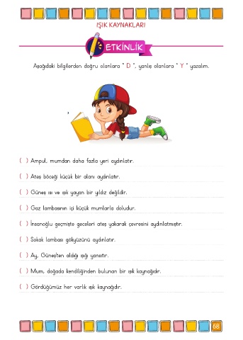 Aşağıdaki bilgilerden doğru olanlara “ D ”, yanlış olanlara “ Y ” yazalım.