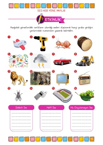 Aşağıdaki görsellerdeki varlıkların çıkardığı sesleri düşünerek hangi gruba girdiğini