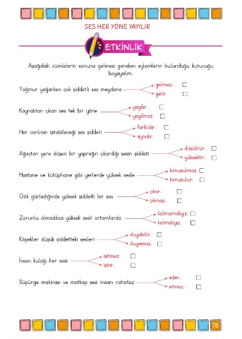 Aşağıdaki cümlelerin sonuna gelmesi gereken eylemlerin bulunduğu kutucuğu