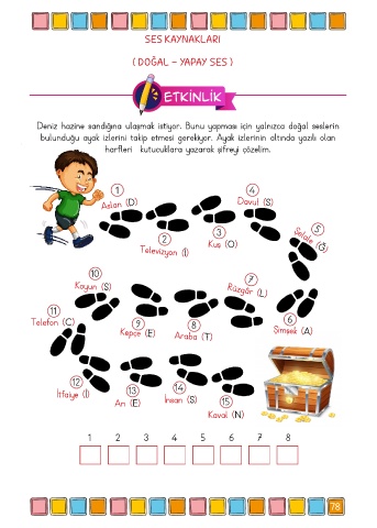 bulunduğu ayak izlerini takip etmesi gerekiyor. Ayak izlerinin altında yazılı olan
