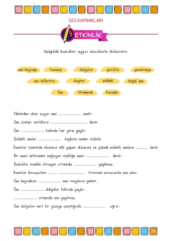 Aşağıdaki boşlukları uygun sözcüklerle dolduralım.