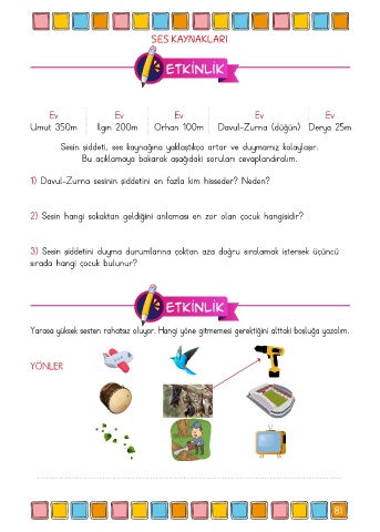 2) Sesin hangi sokaktan geldiğini anlaması en zor olan çocuk hangisidir?