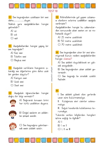 bir yerden duyulur? pekşen yayınları C) Ses kaynağı ile aradaki uzaklık