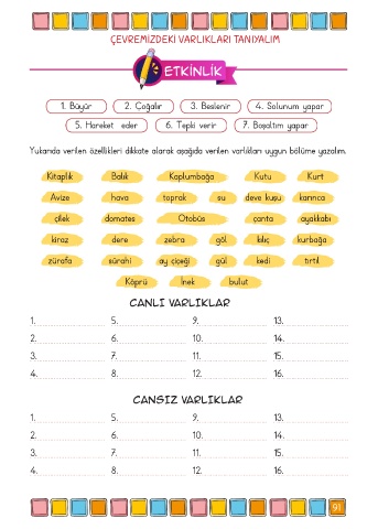 5. Hareket eder 6. Tepki verir 7. Boşaltım yapar