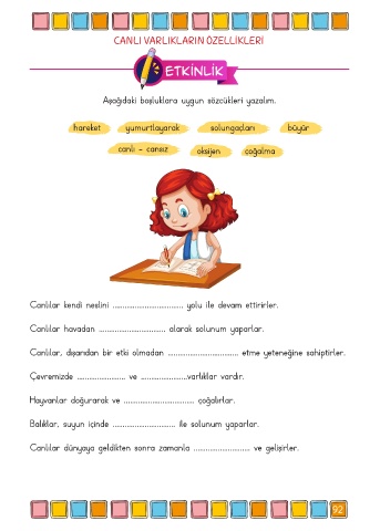 Aşağıdaki boşluklara uygun sözcükleri yazalım.