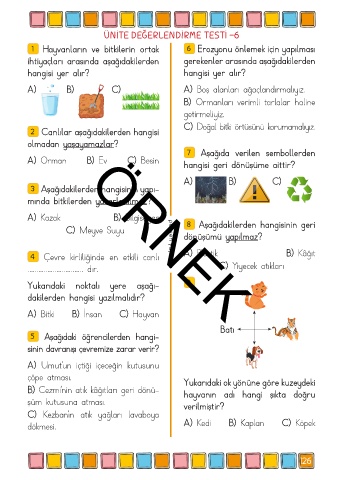 ÜNİTE DEĞERLENDİRME TESTİ -6