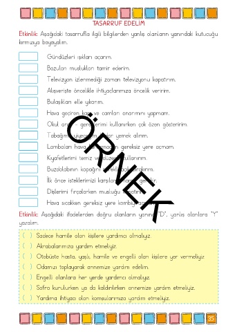 Etkinlik: Aşağıdaki tasarrufla ilgili bilgilerden yanlış olanların yanındaki kutucuğu