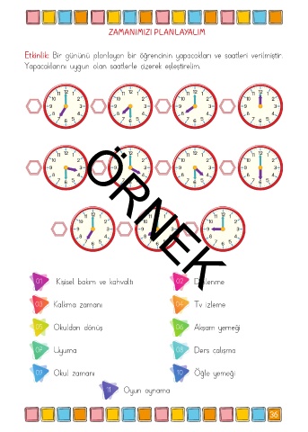 Yapacaklarını uygun olan saatlerle çizerek eşleştirelim.