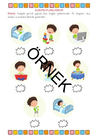 GÜNÜMÜ PLANLIYORUM Etkinlik: Aşağıda günlük yapılan bazı olaylar gösterilmiştir. Bu olayların oluş sırasını numaralandırarak gösterelim. ÖRNEK 37
