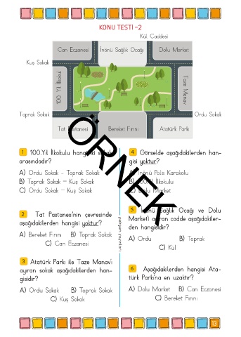 B) Toprak Sokak – Kuş Sokak B) 100.Yıl İlkokulu