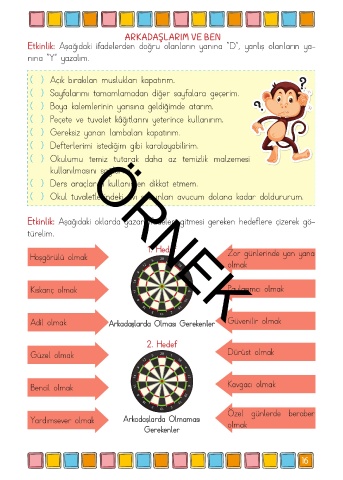 Etkinlik: Aşağıdaki oklarda yazan ifadeleri gitmesi gereken hedeflere çizerek gö-