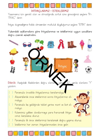 Yukarıdaki açıklamalara göre ihtiyaçlarımızı ve isteklerimizi uygun çocuklara