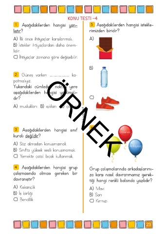 1 Aşağıdakilerden hangisi yan- 5 Aşağıdakilerden hangisi istekle-
