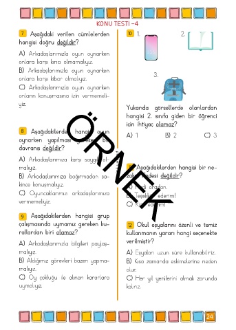çalışmasında uymamız gereken ku- 12 Okul eşyalarını özenli ve temiz