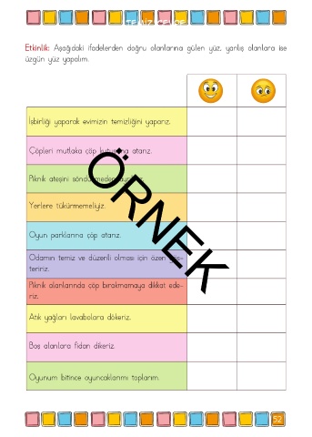 Etkinlik: Aşağıdaki ifadelerden doğru olanlarına gülen yüz, yanlış olanlara ise