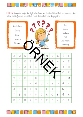 Etkinlik: Aşağıda sağlık ile ilgili sözcükler verilmiştir. Sözcükleri bulmacadan bu-