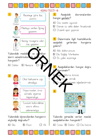 A) Sıla B) Elvan C) Ali A) Eczacı B) Doktor C) Diş hekimi