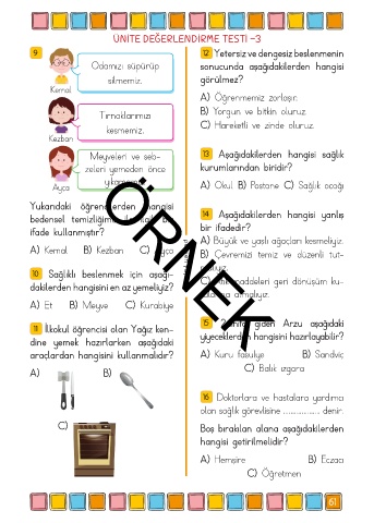 Meyveleri ve seb- 13 Aşağıdakilerden hangisi sağlık