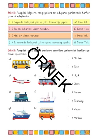 Etkinlik: Aşağıdaki toplu taşıma araçlarını görselleri yanlarındaki harfleri ya-