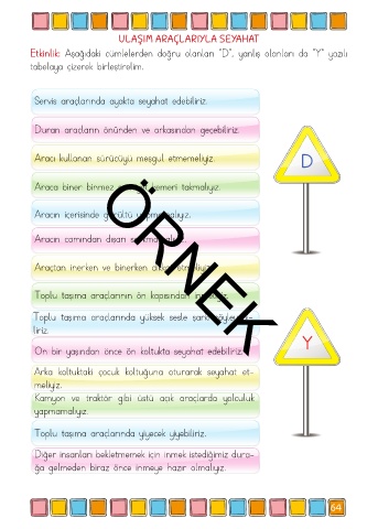 Etkinlik: Aşağıdaki cümlelerden doğru olanları “D”, yanlış olanları da “Y” yazılı