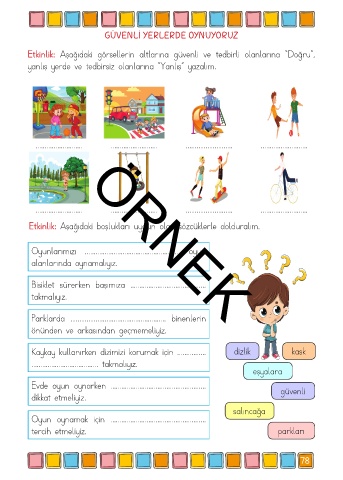 Etkinlik: Aşağıdaki görsellerin altlarına güvenli ve tedbirli olanlarına “Doğru”,